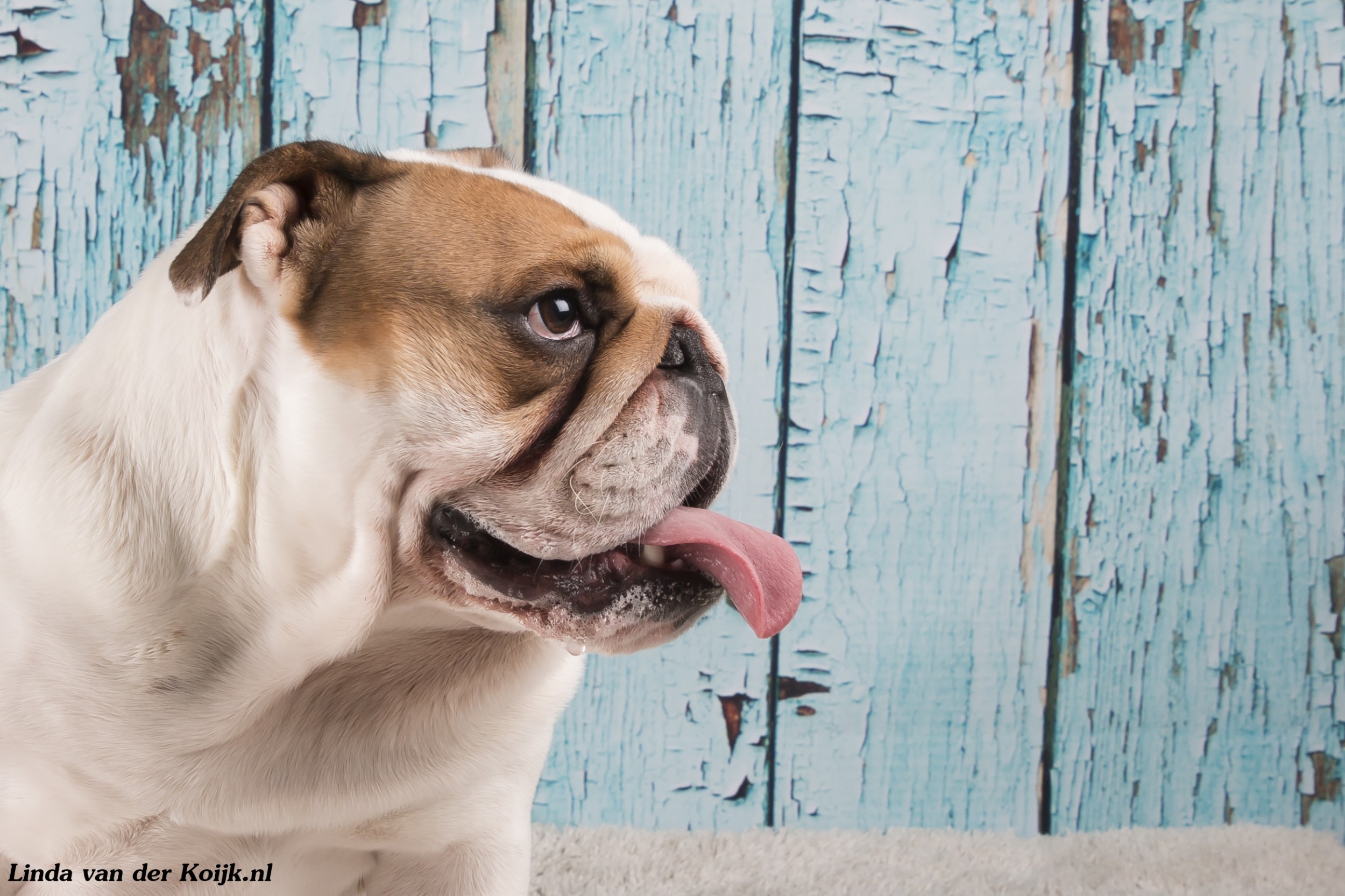 Honden in de studio.... En niet zomaar honden: Lola, de Engelse Bulldog, Guus de Franse Bulldog en Charlie de Bordeaux Dog. Drie totaal verschillende honden uit de rasgroep Dogachtigen. Deze honden worden getypeerd door een breed en vlak hoofd met een stompe, soms verkorte, snuit en een relatief zwaar lichaam. Het is niet altijd even gemakkelijk om honden uit deze rasgroep te trainen. De meeste hebben een bijzondere eigen wil. Maar zeker bij een fotoshoot in de studio is het natuurlijk fijn als de hond op commando zit, af gaat en blijft. Gelukkig werkten Lola, Charlie en Guus volkomen mee, en was het weer een groot plezier om deze shoots te mogen doen!